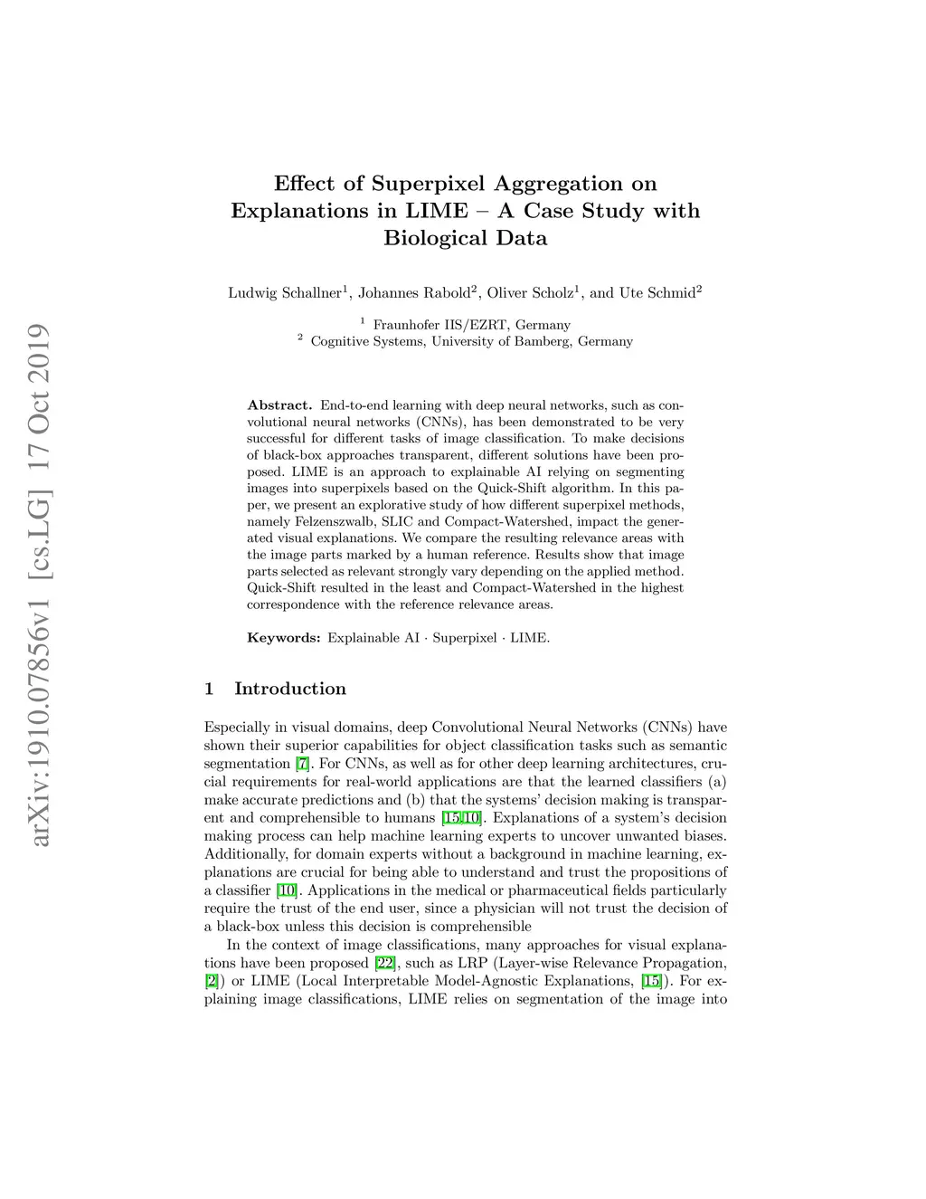End-to-end learning with deep neural networks, such as convolutional neural networks (CNNs), has been demonstrated to be very successful for different tasks of image classification. To make decisions of black-box approaches transparent, different solutions have been proposed. LIME is an approach to explainable AI relying on segmenting images into superpixels based on the Quick-Shift algorithm. In this paper, we present an explorative study of how different superpixel methods, namely Felzenszwalb, SLIC and Compact-Watershed, impact the generated visual explanations. We compare the resulting relevance areas with the image parts marked by a human reference. Results show that image parts selected as relevant strongly vary depending on the applied method. Quick-Shift resulted in the least and Compact-Watershed in the highest correspondence with the reference relevance areas.