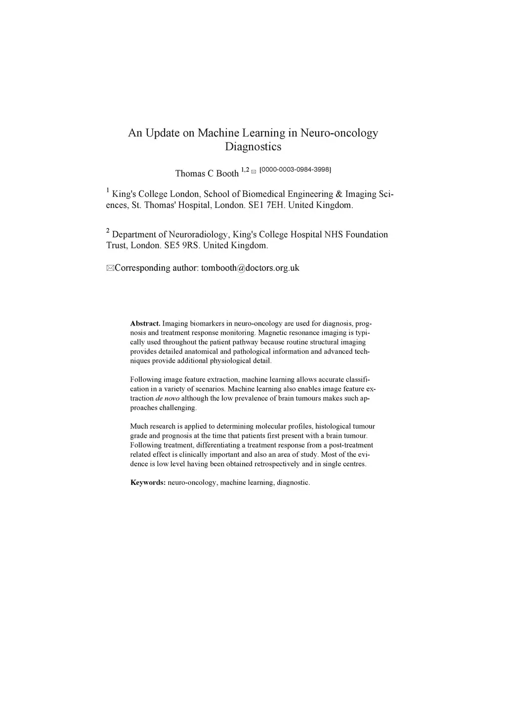 An Update on Machine Learning in Neuro-oncology Diagnostics