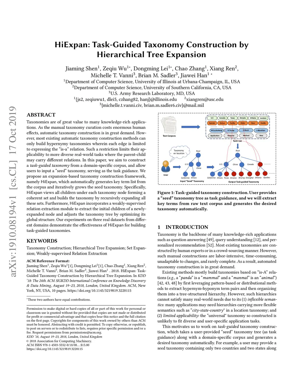 HiExpan: Task-Guided Taxonomy Construction by Hierarchical Tree