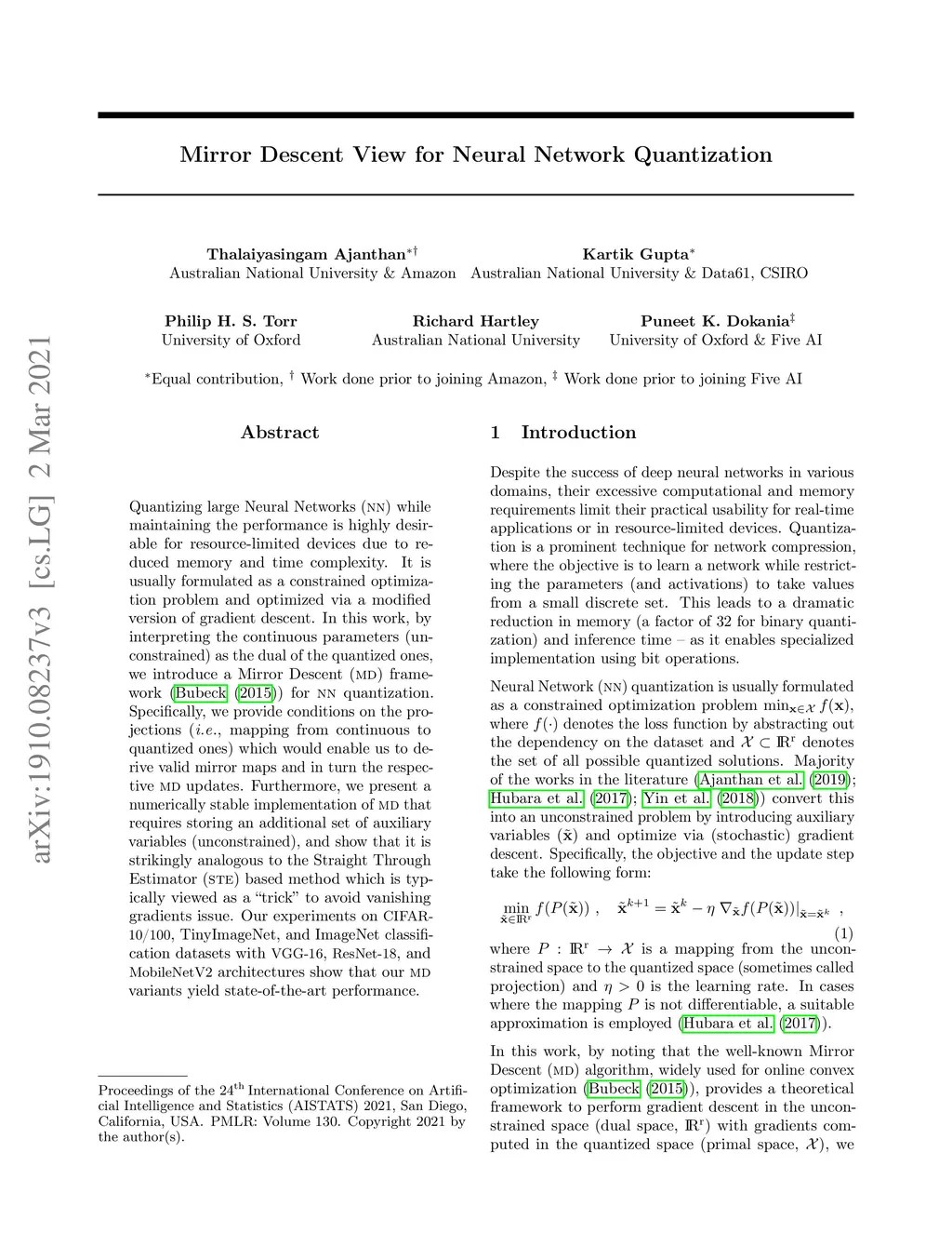 Mirror Descent View for Neural Network Quantization