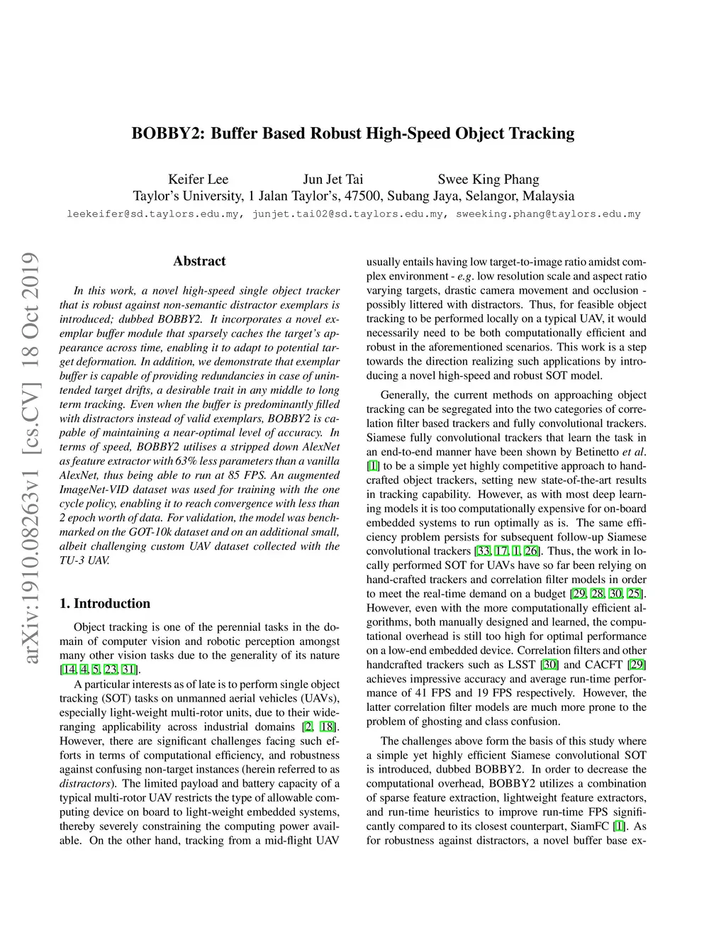 In this work, a novel high-speed single object tracker that is robust against non-semantic distractor exemplars is introduced; dubbed BOBBY2. It incorporates a novel exemplar buffer module that sparsely caches the target's appearance across time, enabling it to adapt to potential target deformation. As for training, an augmented ImageNet-VID dataset was used in conjunction with the one cycle policy, enabling it to reach convergence with less than 2 epoch worth of data. For validation, the model was benchmarked on the GOT-10k dataset and on an additional small, albeit challenging custom UAV dataset collected with the TU-3 UAV. We demonstrate that the exemplar buffer is capable of providing redundancies in case of unintended target drifts, a desirable trait in any middle to long term tracking. Even when the buffer is predominantly filled with distractors instead of valid exemplars, BOBBY2 is capable of maintaining a near-optimal level of accuracy. BOBBY2 manages to achieve a very competitive result on the GOT-10k dataset and to a lesser degree on the challenging custom TU-3 dataset, without fine-tuning, demonstrating its generalizability. In terms of speed, BOBBY2 utilizes a stripped down AlexNet as feature extractor with 63% less parameters than a vanilla AlexNet, thus being able to run at a competitive 85 FPS.