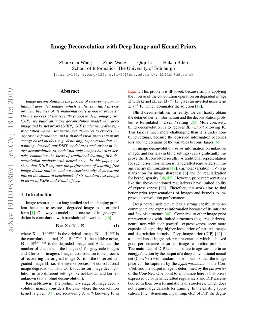 Image Deconvolution with Deep Image and Kernel Priors