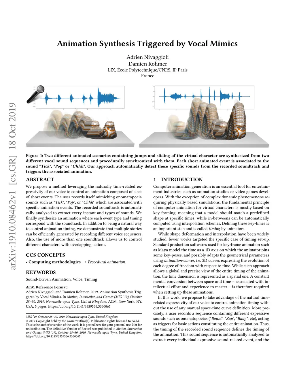 We propose a method leveraging the naturally time-related expressivity of our voice to control an animation composed of a set of short events. The user records itself mimicking onomatopoeia sounds such as "Tick", "Pop", or "Chhh" which are associated with specific animation events. The recorded soundtrack is automatically analyzed to extract every instant and types of sounds. We finally synthesize an animation where each event type and timing correspond with the soundtrack. In addition to being a natural way to control animation timing, we demonstrate that multiple stories can be efficiently generated by recording different voice sequences. Also, the use of more than one soundtrack allows us to control different characters with overlapping actions.