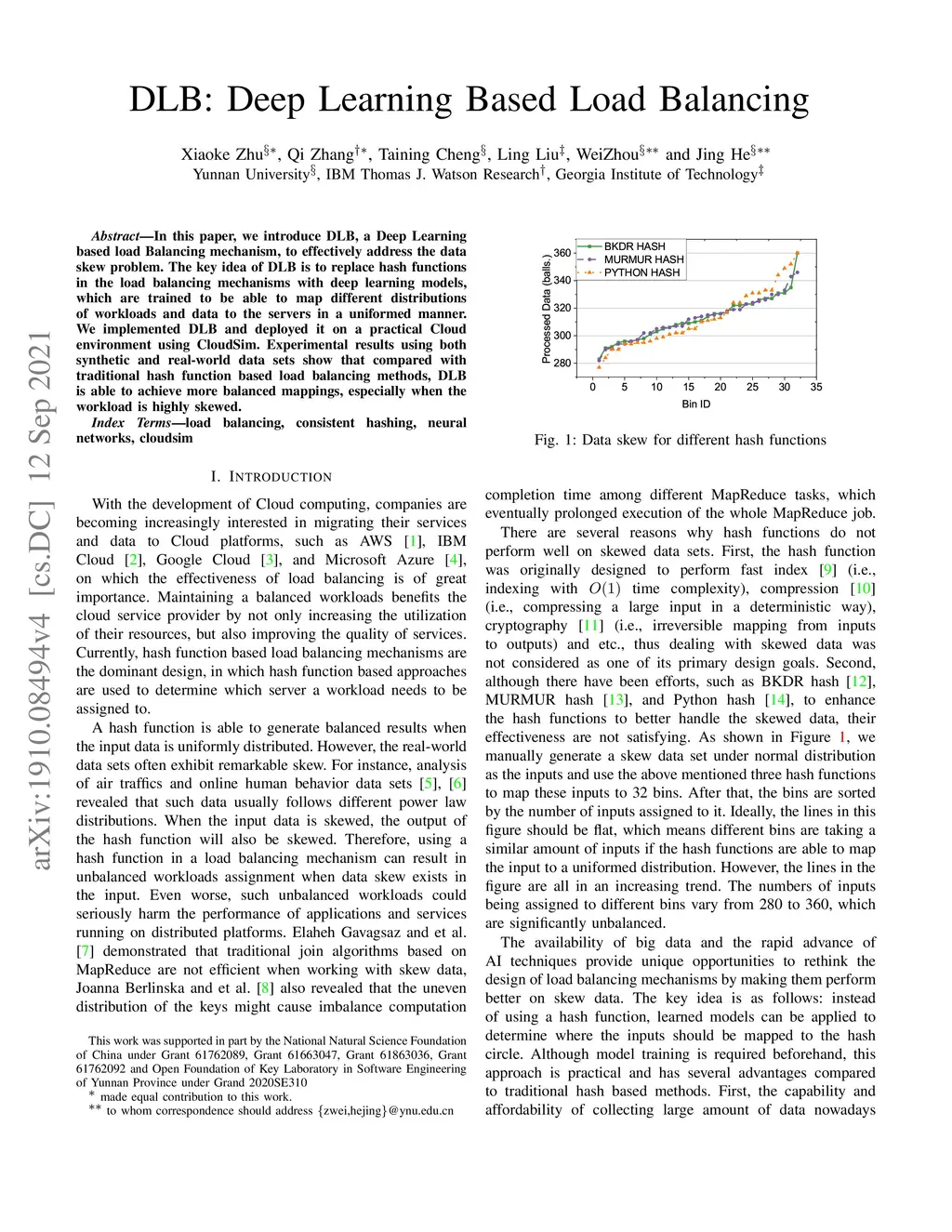 In this paper, we introduce DLB, a Deep Learning based load Balancing mechanism, to effectively address the data skew problem. The key idea of DLB is to replace hash functions in the load balancing mechanisms with deep learning models, which are trained to be able to map different distributions of workloads and data to the servers in a uniformed manner. We implemented DLB and deployed it on a practical Cloud environment using CloudSim. Experimental results using both synthetic and real-world data sets show that compared with traditional hash function based load balancing methods, DLB is able to achieve more balanced mappings, especially when the workload is highly skewed.