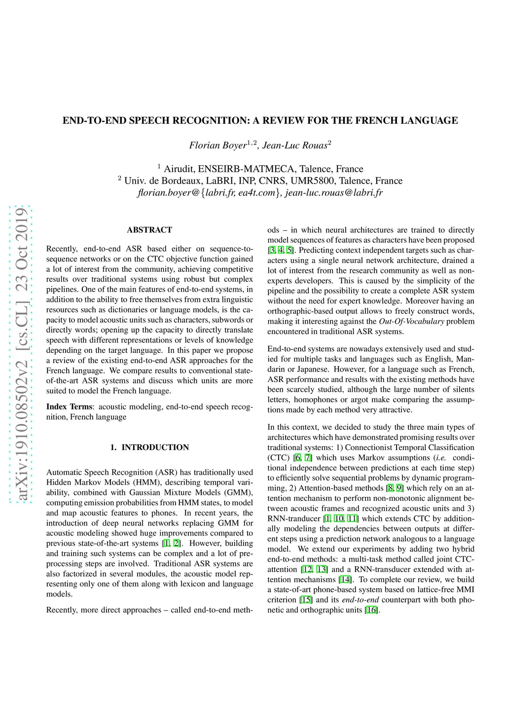 End-to-End Speech Recognition: A review for the French Language