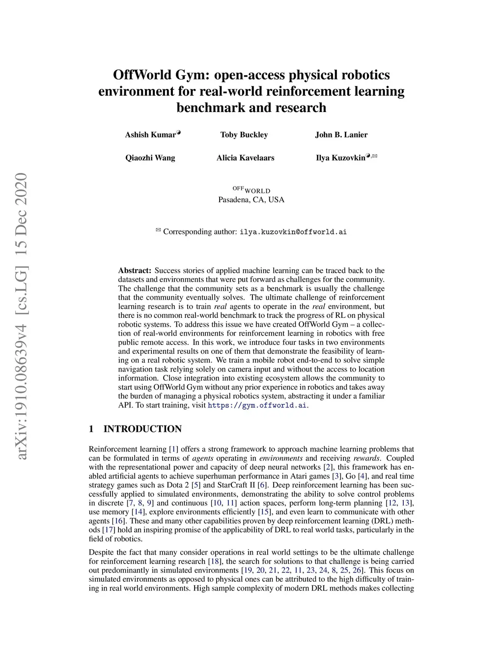 OffWorld Gym: open-access physical robotics environment for real-world