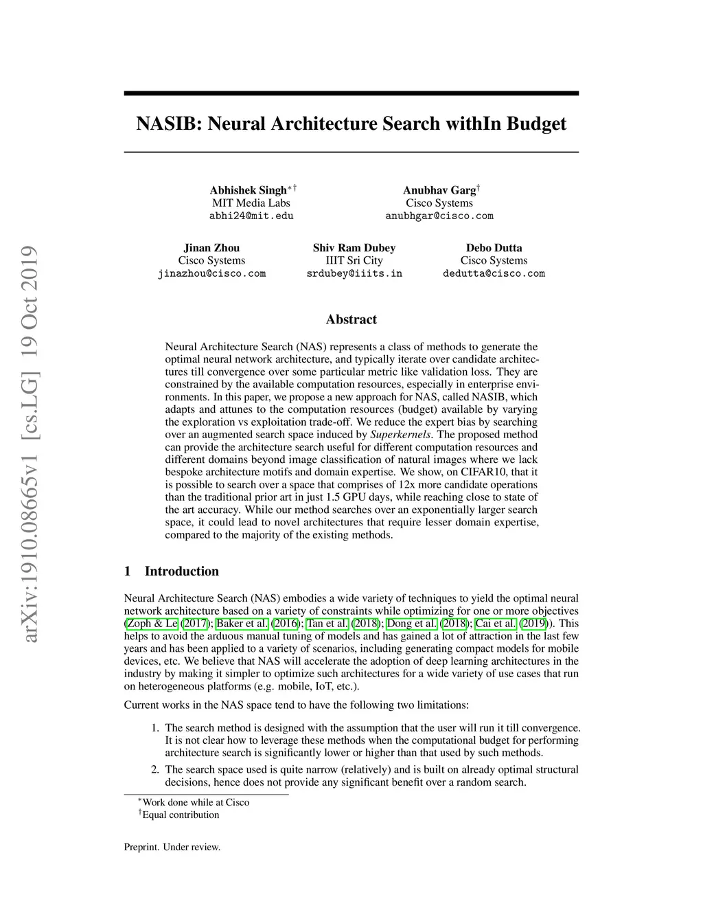 NASIB: Neural Architecture Search withIn Budget
