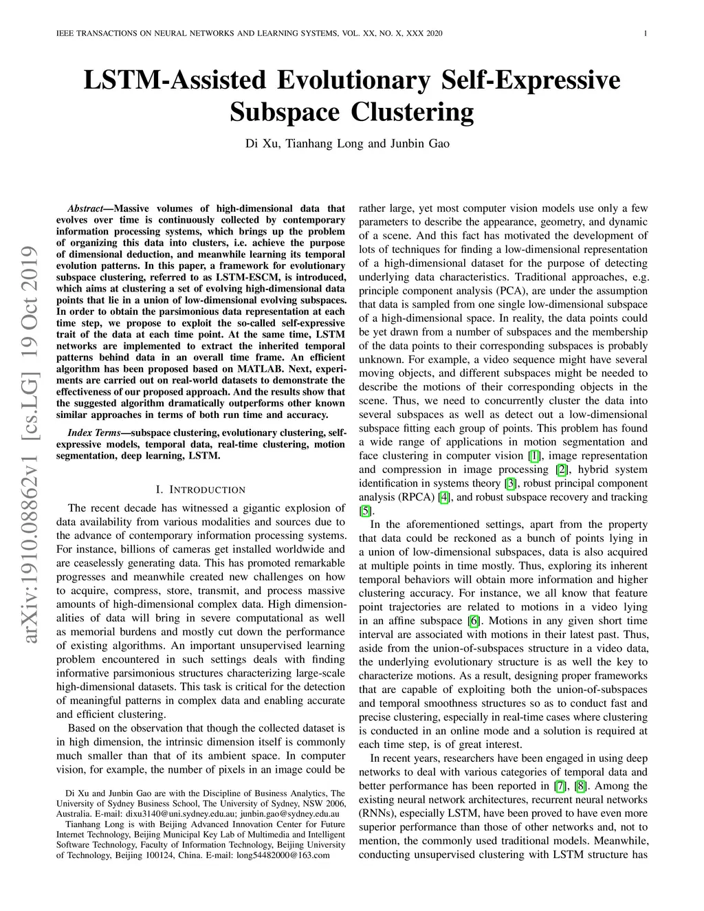 LSTM-Assisted Evolutionary Self-Expressive Subspace Clustering