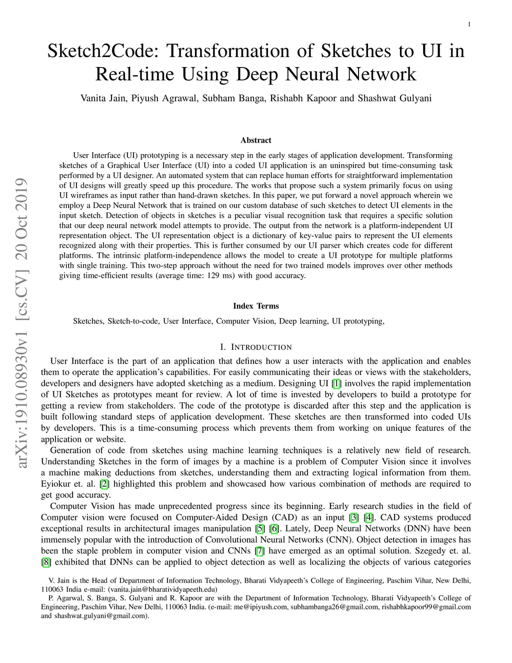 Sketch2Code: Transformation of Sketches to UI in Real-time Using Deep