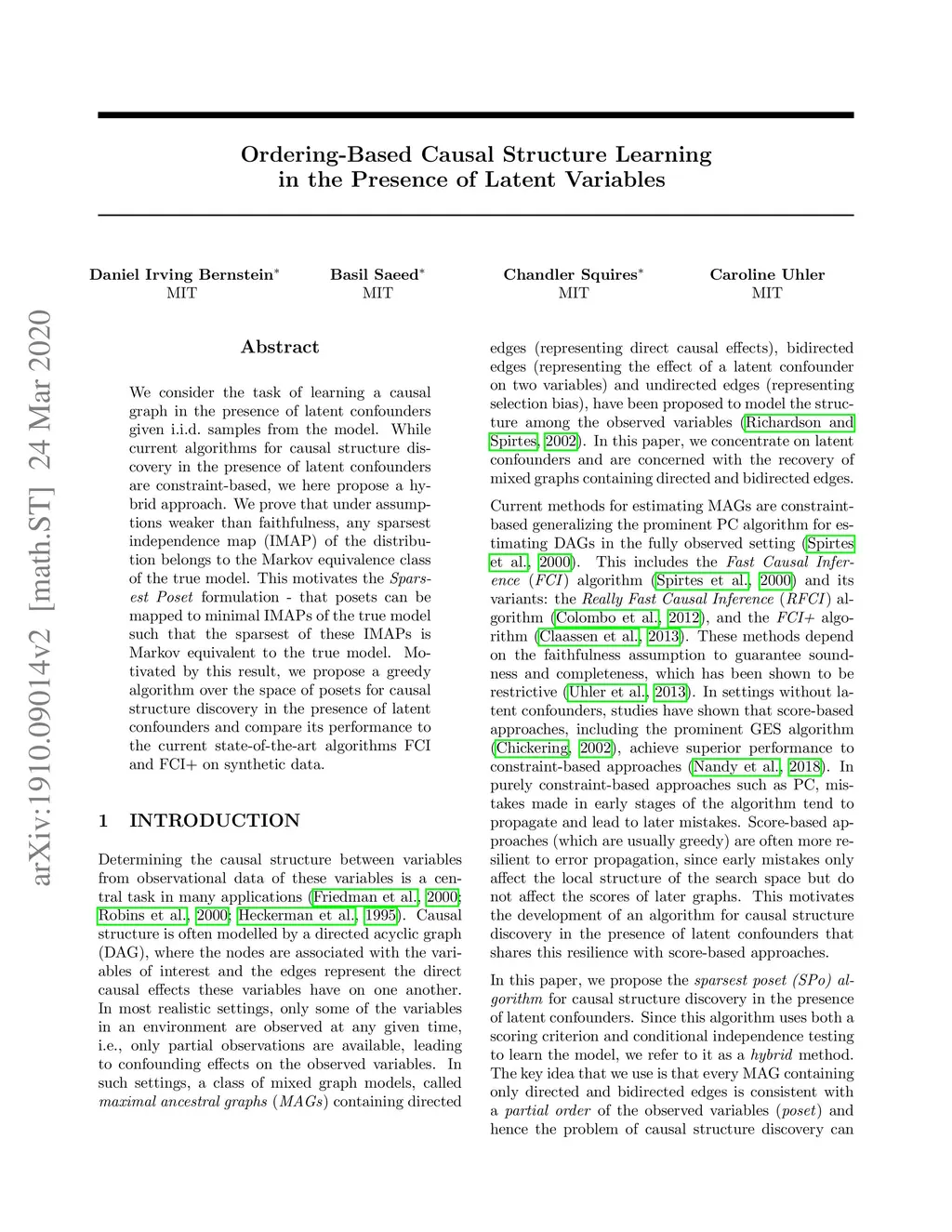 Ordering-Based Causal Structure Learning in the Presence of Latent