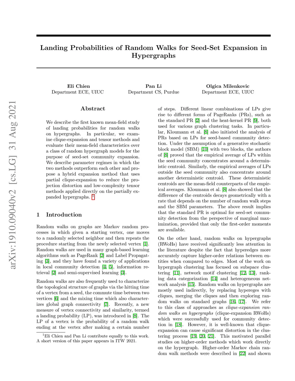We describe the first known mean-field study of landing probabilities for random walks on hypergraphs. In particular, we examine clique-expansion and tensor methods and evaluate their mean-field characteristics over a class of random hypergraph models for the purpose of seed-set community expansion. We describe parameter regimes in which the two methods outperform each other and propose a hybrid expansion method that uses partial clique-expansion to reduce the projection distortion and low-complexity tensor methods applied directly on the partially expanded hypergraphs.
