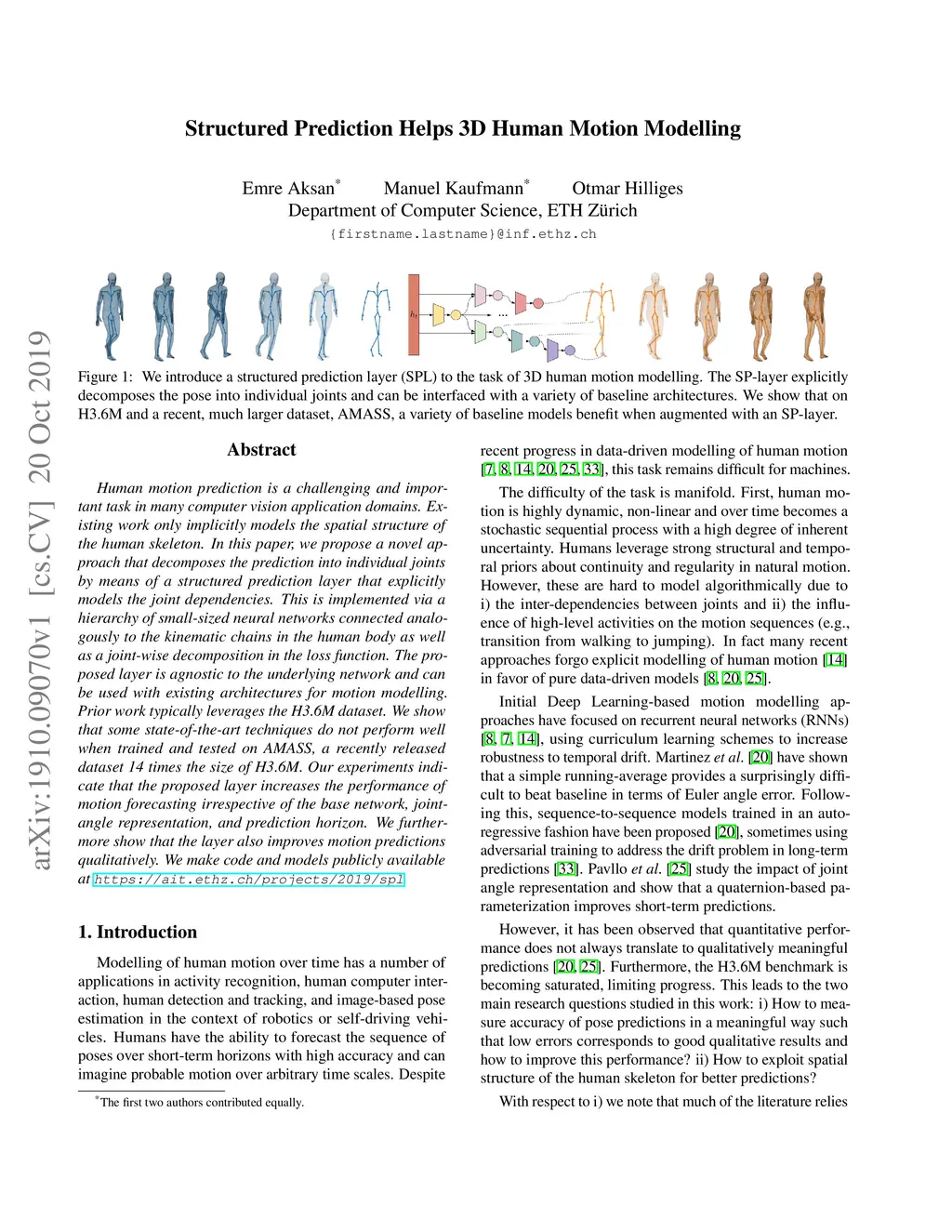 Human motion prediction is a challenging and important task in many computer vision application domains. Existing work only implicitly models the spatial structure of the human skeleton. In this paper, we propose a novel approach that decomposes the prediction into individual joints by means of a structured prediction layer that explicitly models the joint dependencies. This is implemented via a hierarchy of small-sized neural networks connected analogously to the kinematic chains in the human body as well as a joint-wise decomposition in the loss function. The proposed layer is agnostic to the underlying network and can be used with existing architectures for motion modelling. Prior work typically leverages the H3.6M dataset. We show that some state-of-the-art techniques do not perform well when trained and tested on AMASS, a recently released dataset 14 times the size of H3.6M. Our experiments indicate that the proposed layer increases the performance of motion forecasting irrespective of the base network, joint-angle representation, and prediction horizon. We furthermore show that the layer also improves motion predictions qualitatively. We make code and models publicly available at https://ait.ethz.ch/projects/2019/spl.