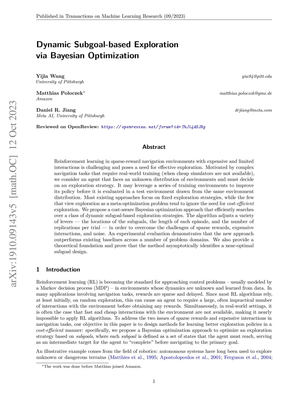 Dynamic Subgoal-based Exploration via Bayesian Optimization