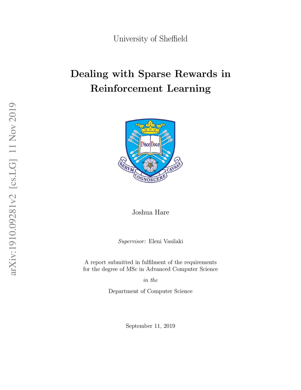 Dealing with Sparse Rewards in Reinforcement Learning