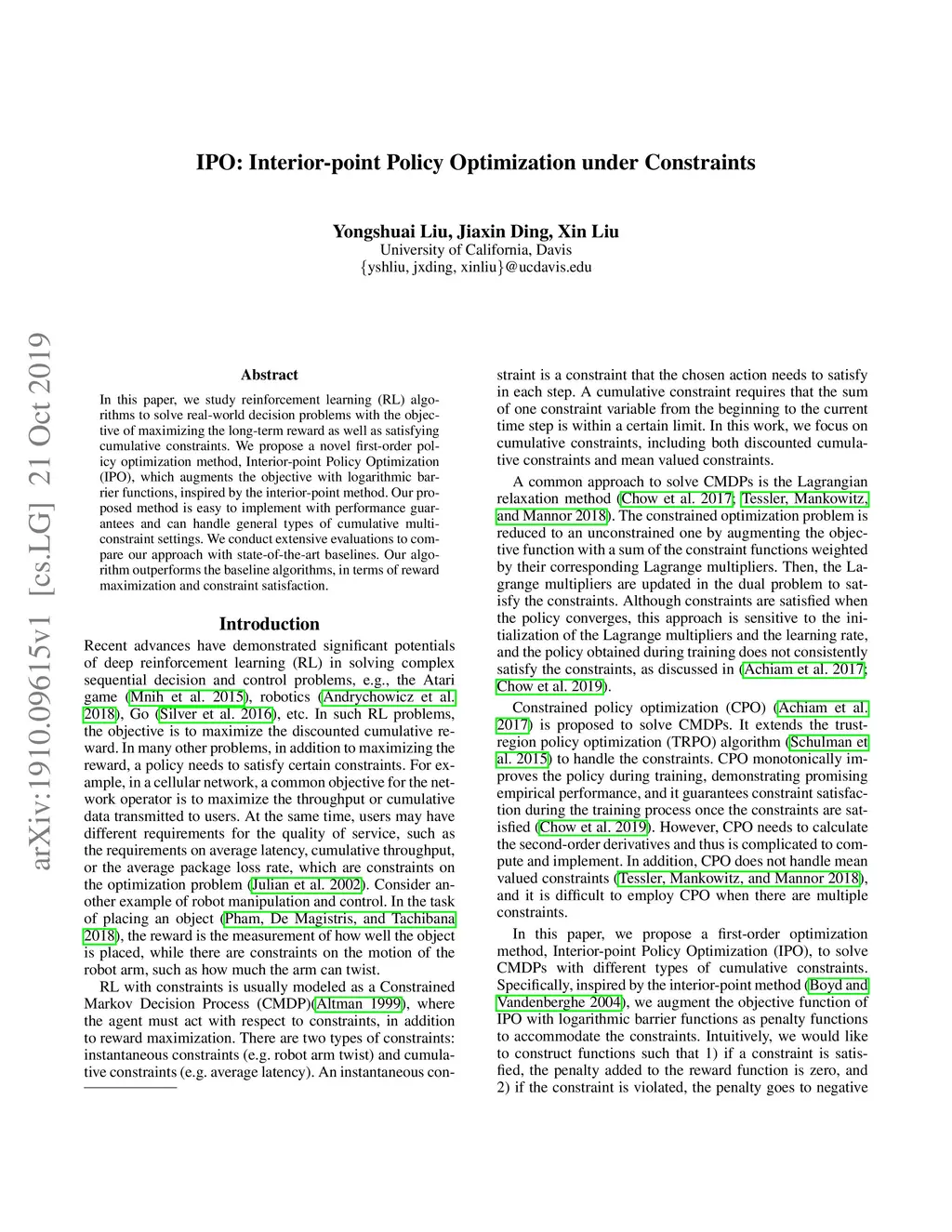 IPO: Interior-point Policy Optimization under Constraints