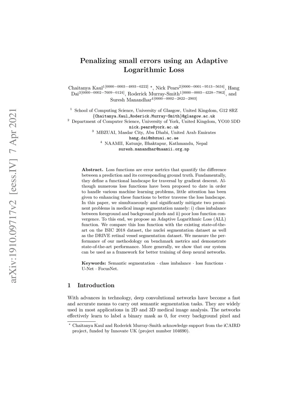 Penalizing small errors using an Adaptive Logarithmic Loss