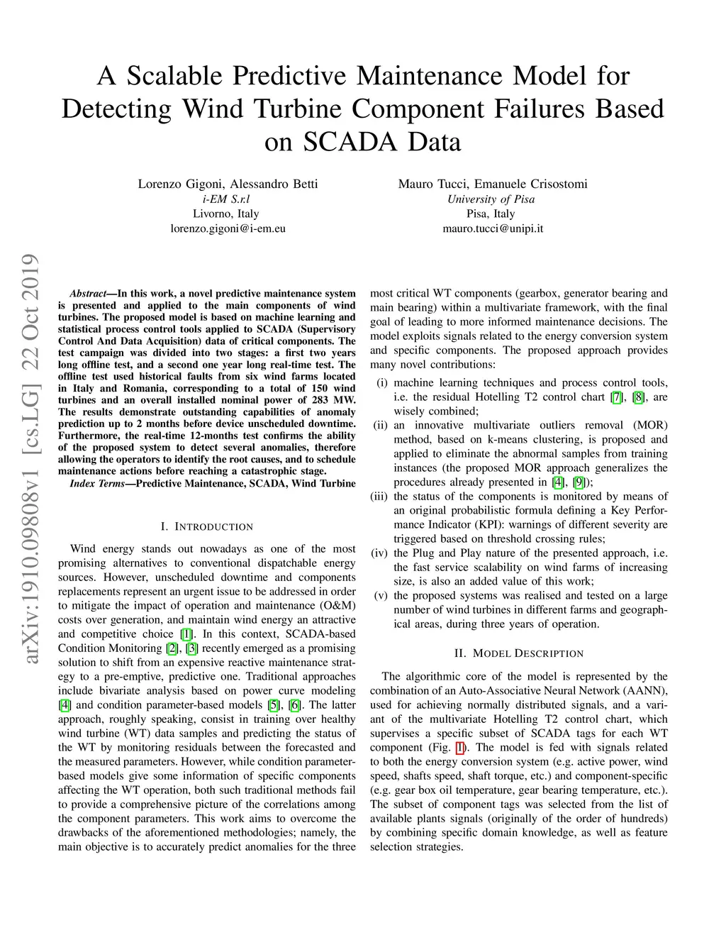 A Scalable Predictive Maintenance Model for Detecting Wind Turbine