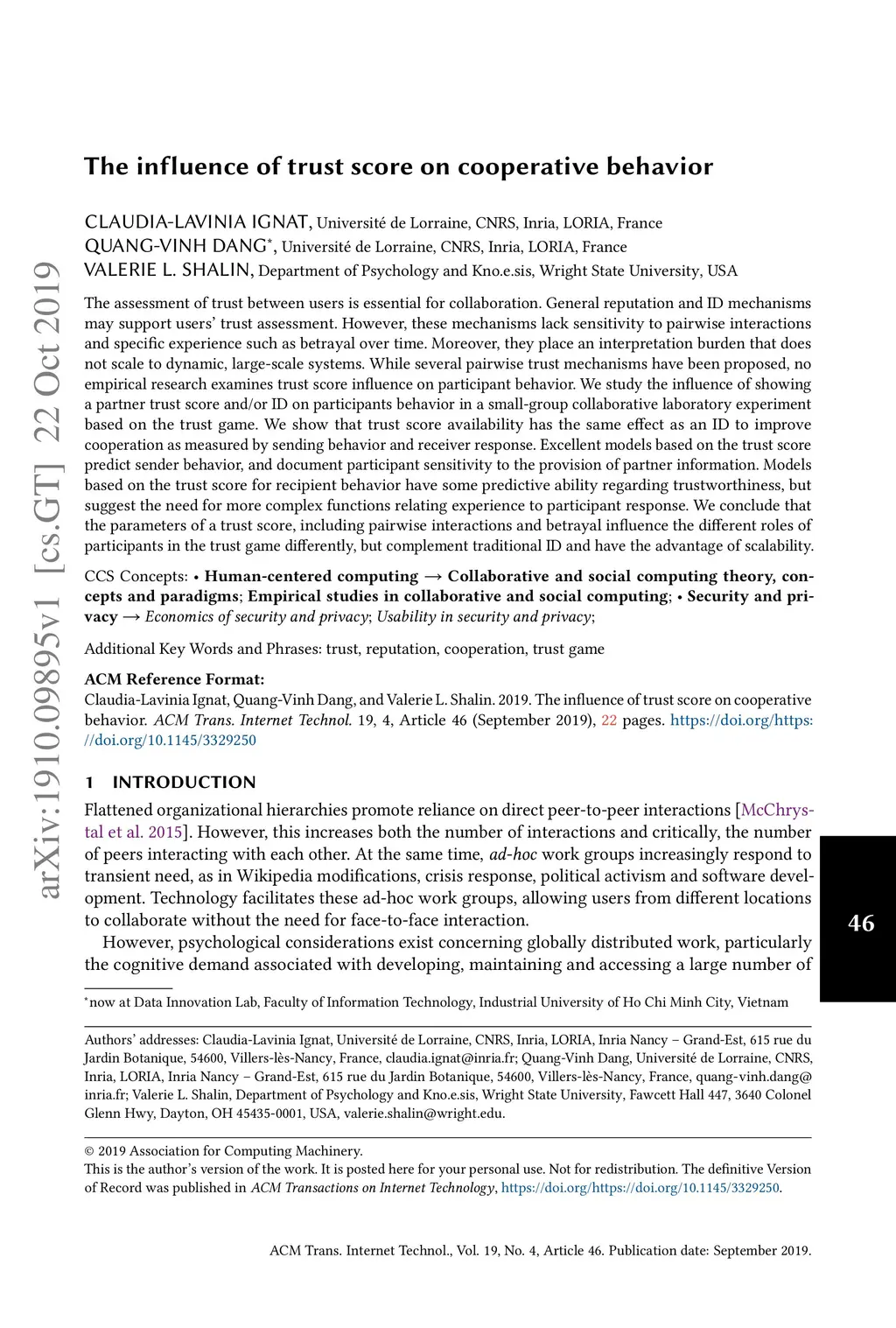 The Influence of Trust Score on Cooperative Behavior