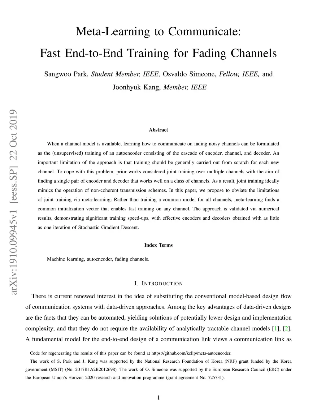 Meta-Learning to Communicate: Fast End-to-End Training for Fading