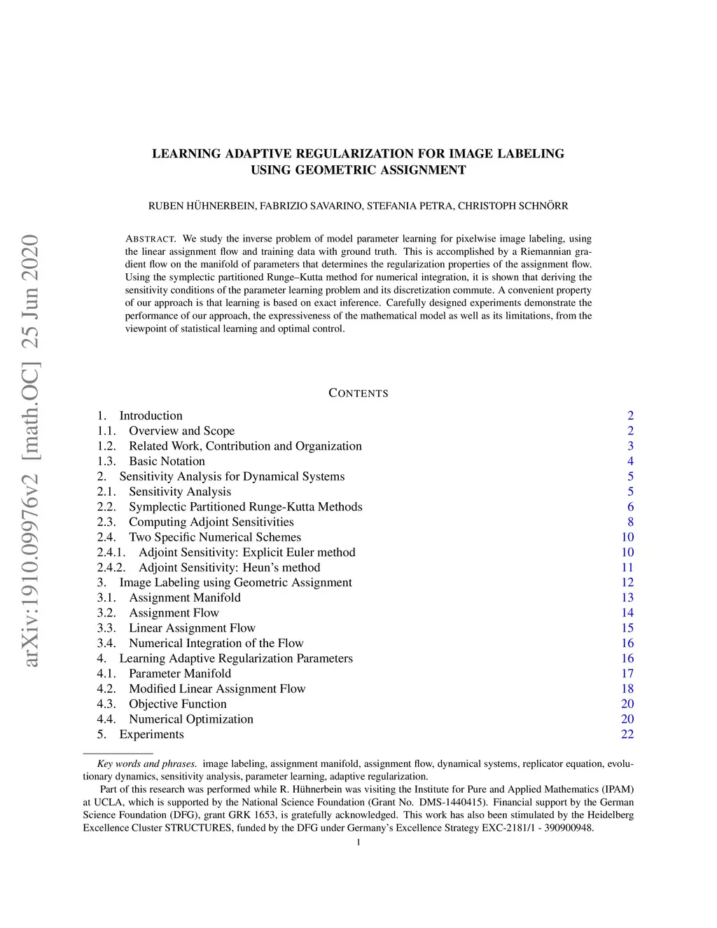 We study the inverse problem of model parameter learning for pixelwise image labeling, using the linear assignment flow and training data with ground truth. This is accomplished by a Riemannian gradient flow on the manifold of parameters that determine the regularization properties of the assignment flow. Using the symplectic partitioned Runge--Kutta method for numerical integration, it is shown that deriving the sensitivity conditions of the parameter learning problem and its discretization commute. A convenient property of our approach is that learning is based on exact inference. Carefully designed experiments demonstrate the performance of our approach, the expressiveness of the mathematical model as well as its limitations, from the viewpoint of statistical learning and optimal control.