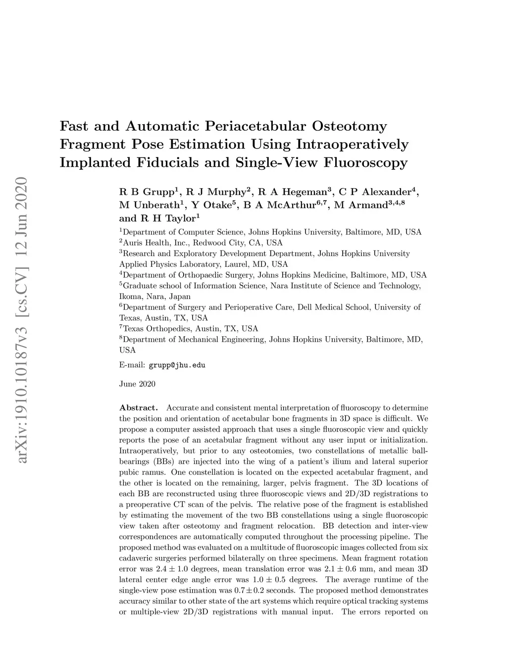 Fast and Automatic Periacetabular Osteotomy Fragment Pose Estimation
