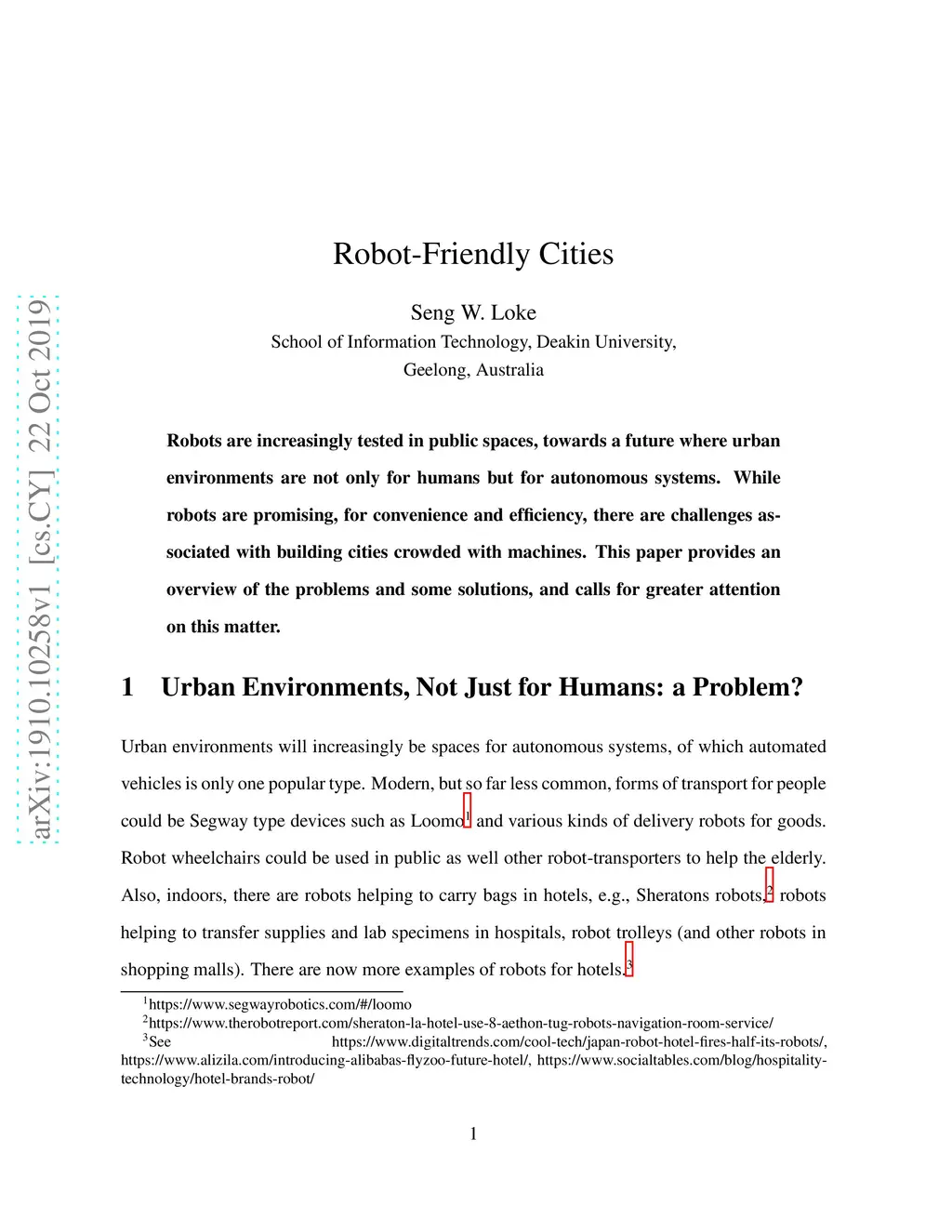 Robots are increasingly tested in public spaces, towards a future where urban environments are not only for humans but for autonomous systems. While robots are promising, for convenience and efficiency, there are challenges associated with building cities crowded with machines. This paper provides an overview of the problems and some solutions, and calls for greater attention on this matter.