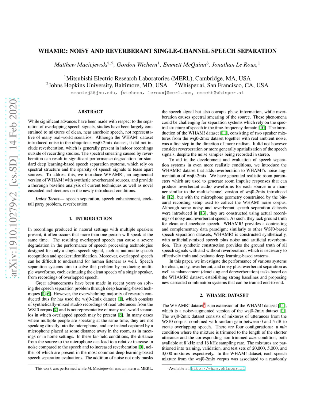 WHAMR!: Noisy and Reverberant Single-Channel Speech Separation