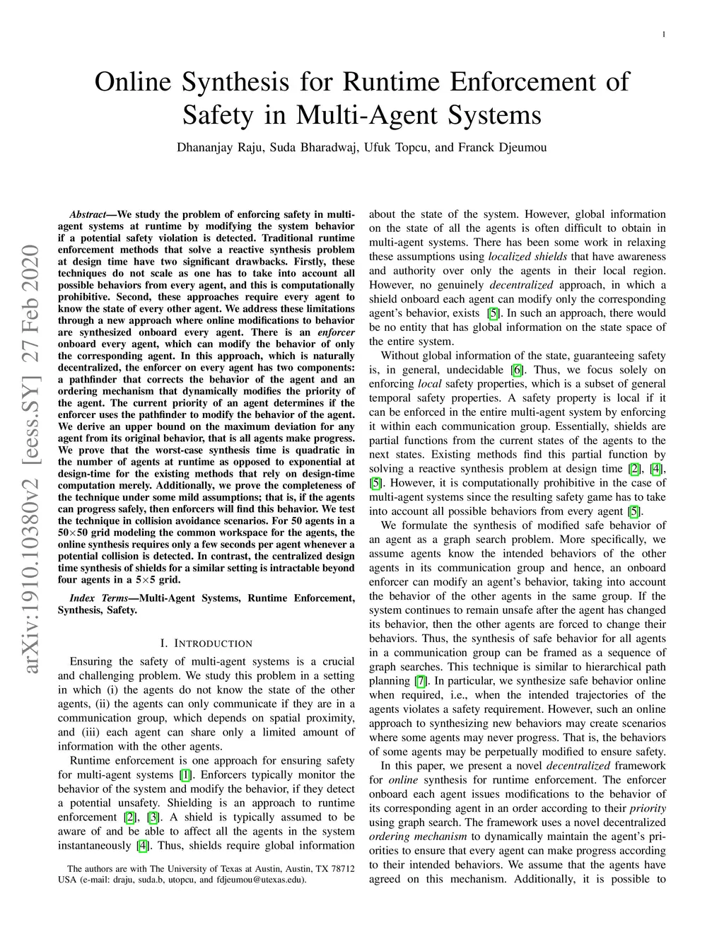 Online Synthesis for Runtime Enforcement of Safety in Multi-Agent
