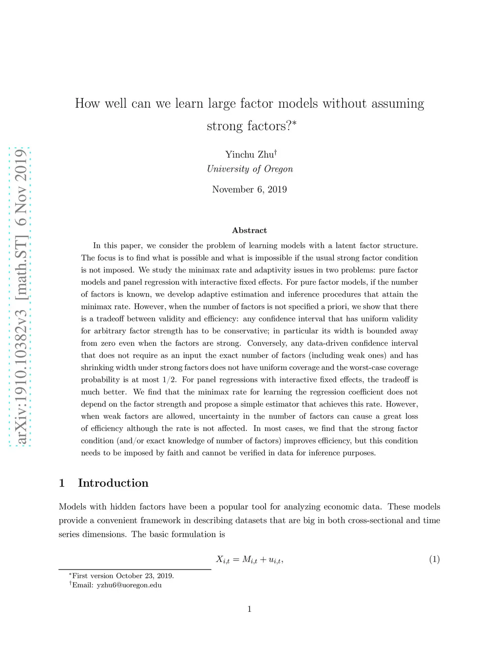 In this paper, we consider the problem of learning models with a latent factor structure. The focus is to find what is possible and what is impossible if the usual strong factor condition is not imposed. We study the minimax rate and adaptivity issues in two problems: pure factor models and panel regression with interactive fixed effects. For pure factor models, if the number of factors is known, we develop adaptive estimation and inference procedures that attain the minimax rate. However, when the number of factors is not specified a priori, we show that there is a tradeoff between validity and efficiency: any confidence interval that has uniform validity for arbitrary factor strength has to be conservative; in particular its width is bounded away from zero even when the factors are strong. Conversely, any data-driven confidence interval that does not require as an input the exact number of factors (including weak ones) and has shrinking width under strong factors does not have uniform coverage and the worst-case coverage probability is at most 1/2. For panel regressions with interactive fixed effects, the tradeoff is much better. We find that the minimax rate for learning the regression coefficient does not depend on the factor strength and propose a simple estimator that achieves this rate. However, when weak factors are allowed, uncertainty in the number of factors can cause a great loss of efficiency although the rate is not affected. In most cases, we find that the strong factor condition (and/or exact knowledge of number of factors) improves efficiency, but this condition needs to be imposed by faith and cannot be verified in data for inference purposes.