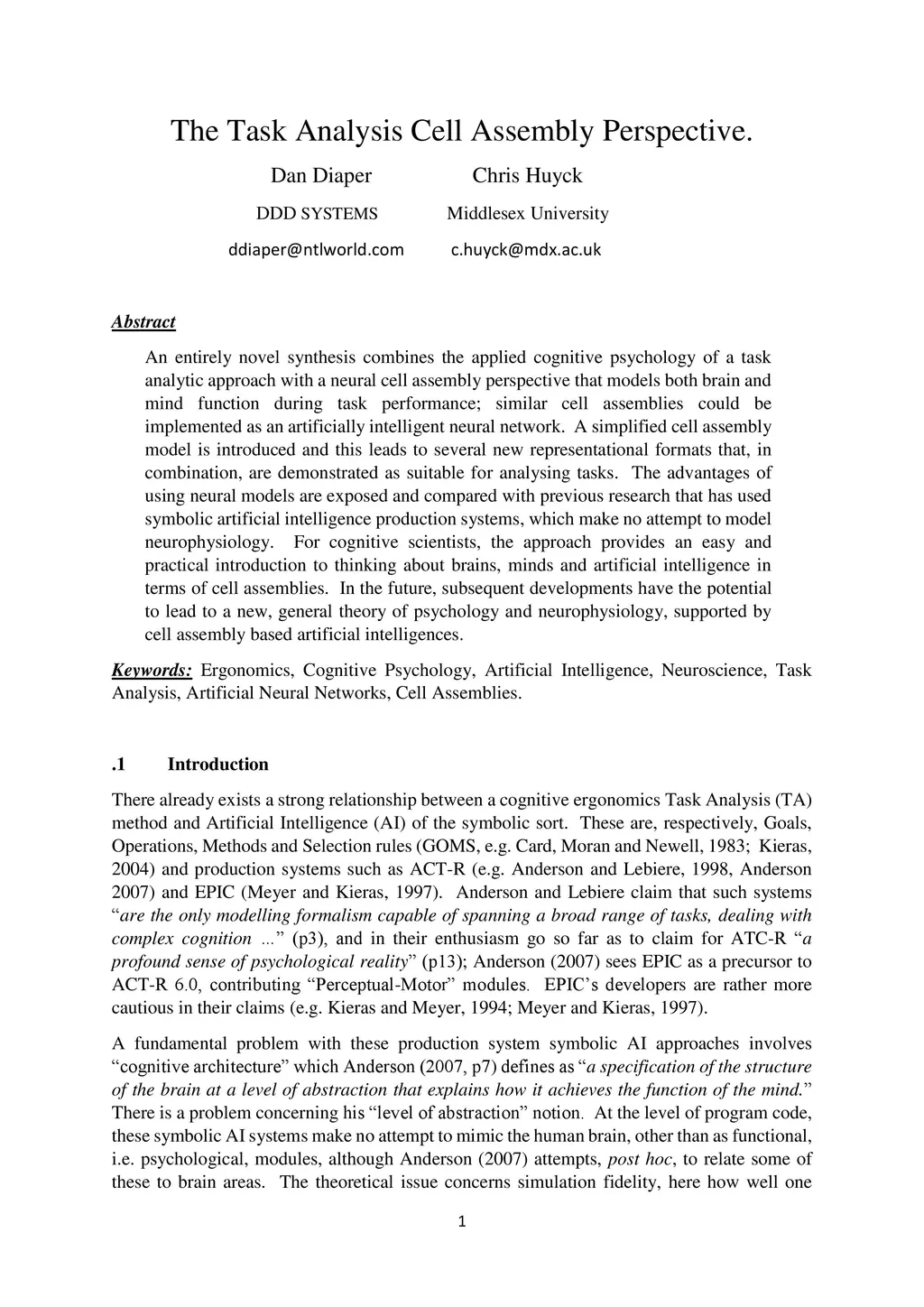 The Task Analysis Cell Assembly Perspective
