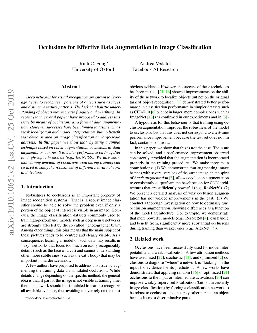 Occlusions for Effective Data Augmentation in Image Classification