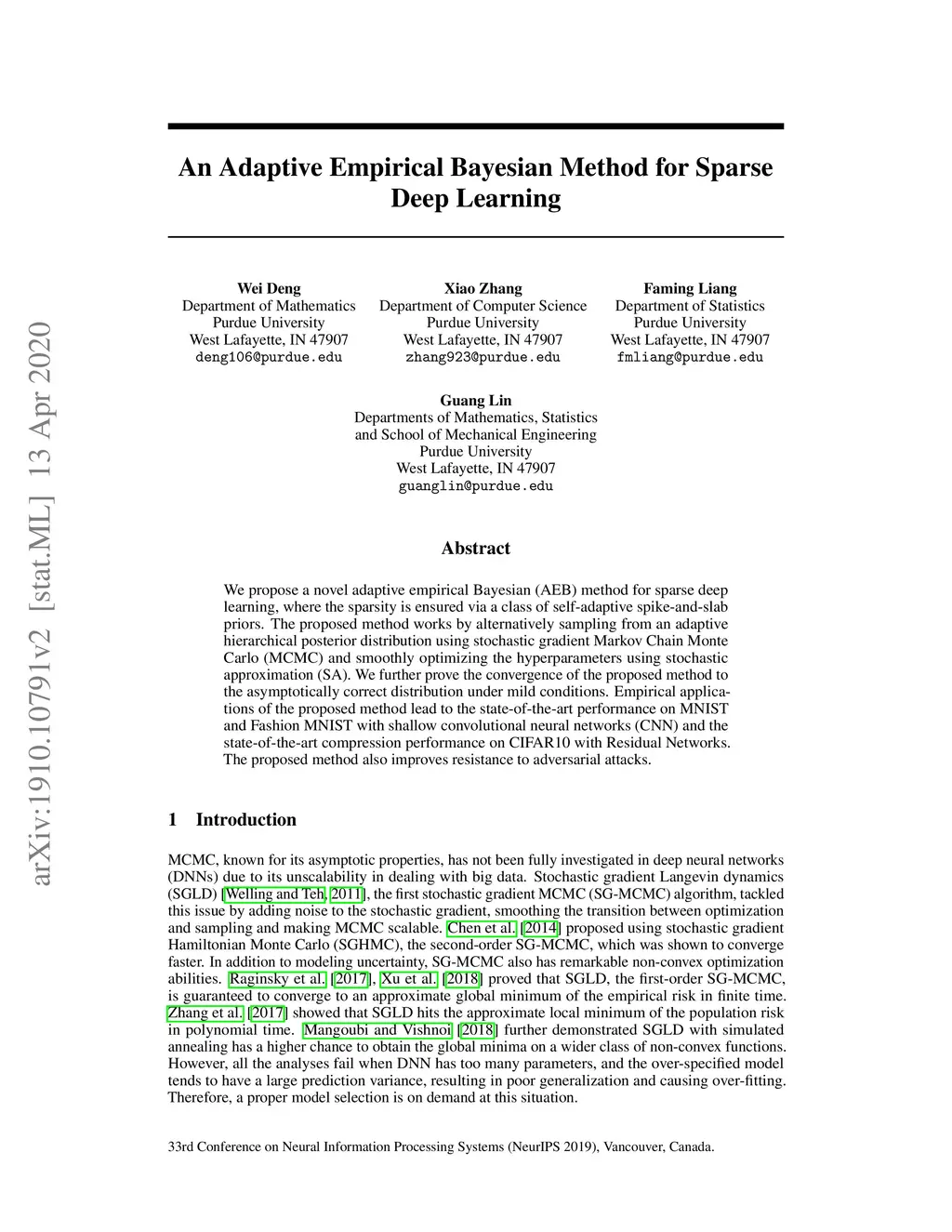 An Adaptive Empirical Bayesian Method for Sparse Deep Learning
