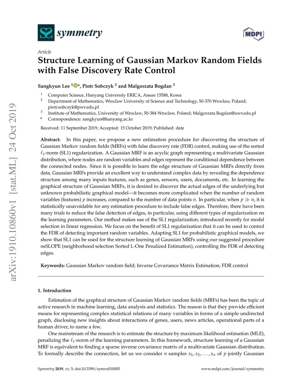 In this paper, we propose a new estimation procedure for discovering the structure of Gaussian Markov random fields (MRFs) with false discovery rate (FDR) control, making use of the sorted l1-norm (SL1) regularization. A Gaussian MRF is an acyclic graph representing a multivariate Gaussian distribution, where nodes are random variables and edges represent the conditional dependence between the connected nodes. Since it is possible to learn the edge structure of Gaussian MRFs directly from data, Gaussian MRFs provide an excellent way to understand complex data by revealing the dependence structure among many inputs features, such as genes, sensors, users, documents, etc. In learning the graphical structure of Gaussian MRFs, it is desired to discover the actual edges of the underlying but unknown probabilistic graphical model-it becomes more complicated when the number of random variables (features) p increases, compared to the number of data points n. In particular, when p >> n, it is statistically unavoidable for any estimation procedure to include false edges. Therefore, there have been many trials to reduce the false detection of edges, in particular, using different types of regularization on the learning parameters. Our method makes use of the SL1 regularization, introduced recently for model selection in linear regression. We focus on the benefit of SL1 regularization that it can be used to control the FDR of detecting important random variables. Adapting SL1 for probabilistic graphical models, we show that SL1 can be used for the structure learning of Gaussian MRFs using our suggested procedure nsSLOPE (neighborhood selection Sorted L-One Penalized Estimation), controlling the FDR of detecting edges.