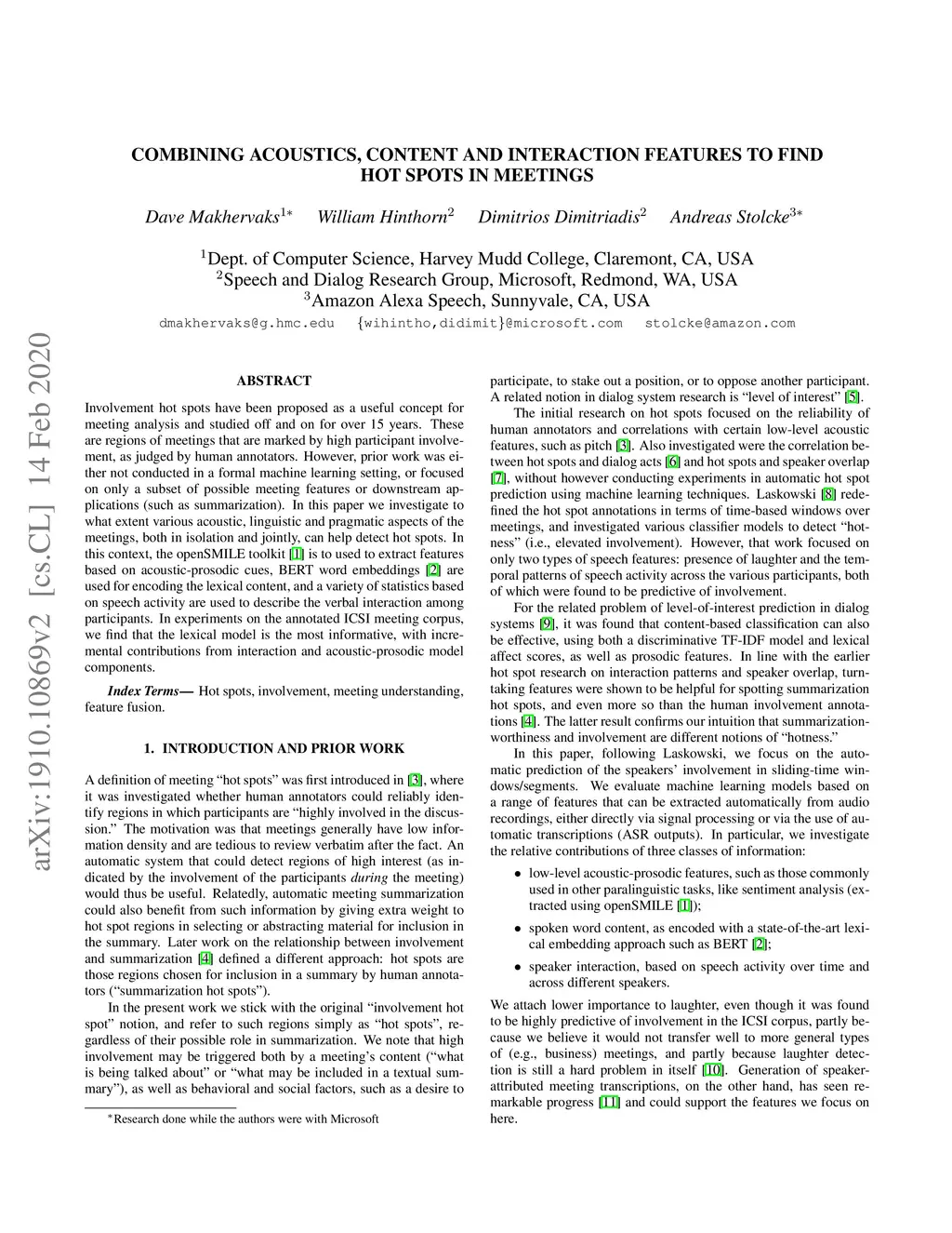 Combining Acoustics, Content and Interaction Features to Find Hot Spots