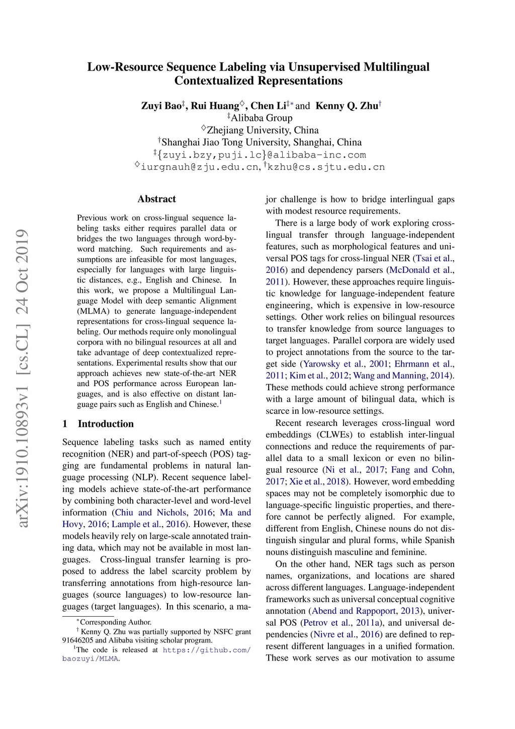 Low-Resource Sequence Labeling via Unsupervised Multilingual