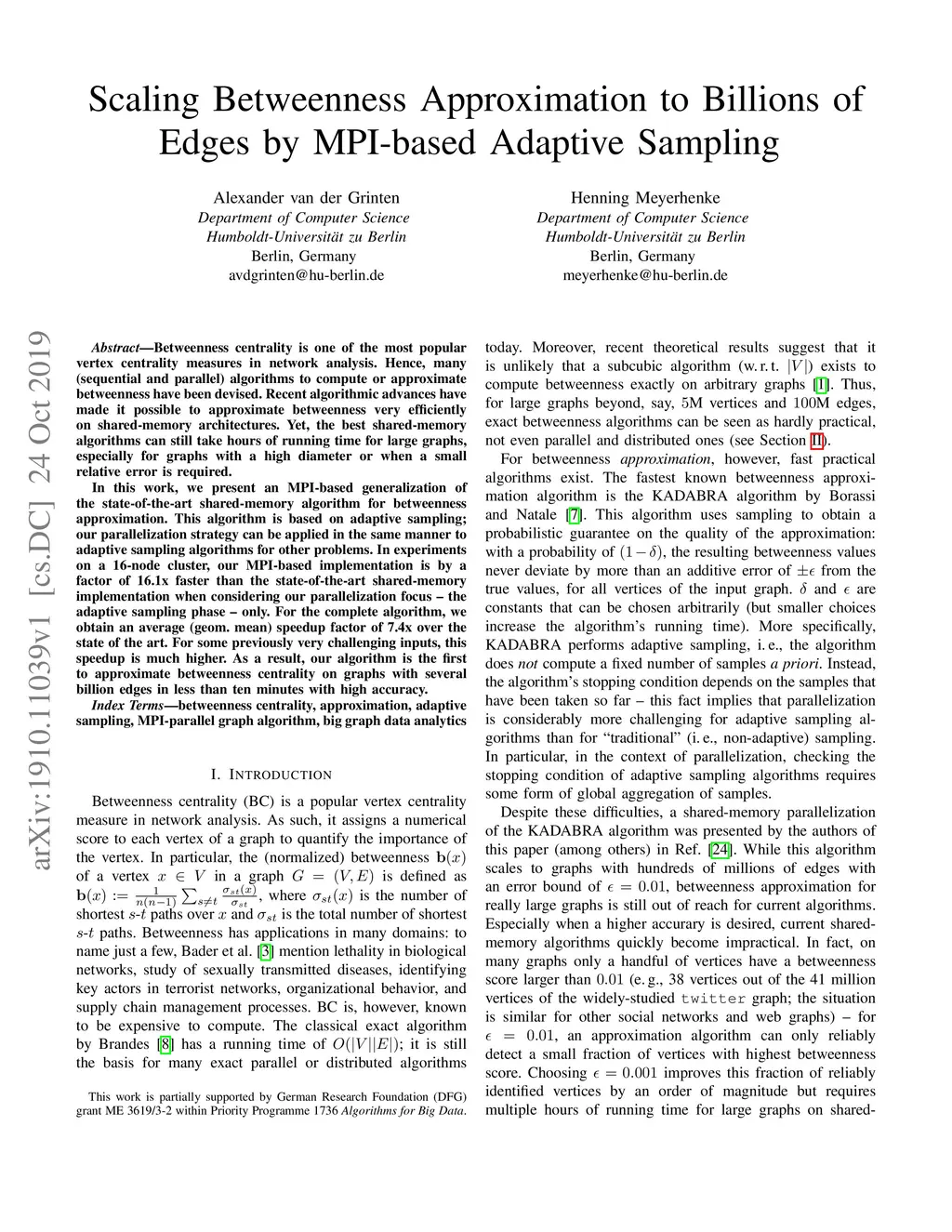 Scaling Betweenness Approximation to Billions of Edges by MPI-based