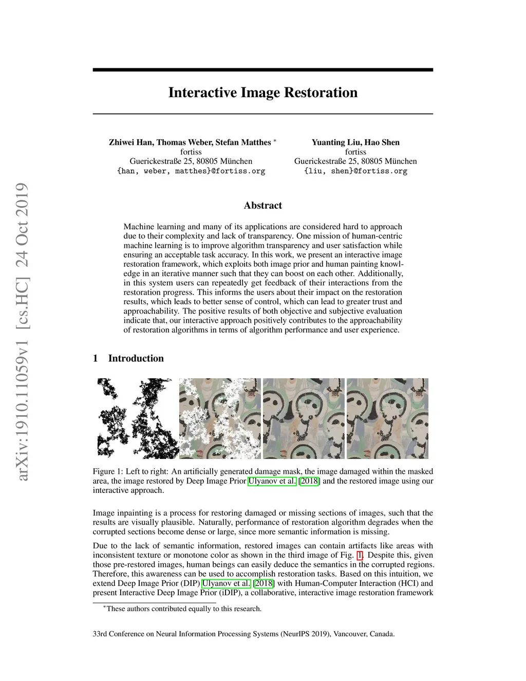 Machine learning and many of its applications are considered hard to approach due to their complexity and lack of transparency. One mission of human-centric machine learning is to improve algorithm transparency and user satisfaction while ensuring an acceptable task accuracy. In this work, we present an interactive image restoration framework, which exploits both image prior and human painting knowledge in an iterative manner such that they can boost on each other. Additionally, in this system users can repeatedly get feedback of their interactions from the restoration progress. This informs the users about their impact on the restoration results, which leads to better sense of control, which can lead to greater trust and approachability. The positive results of both objective and subjective evaluation indicate that, our interactive approach positively contributes to the approachability of restoration algorithms in terms of algorithm performance and user experience.