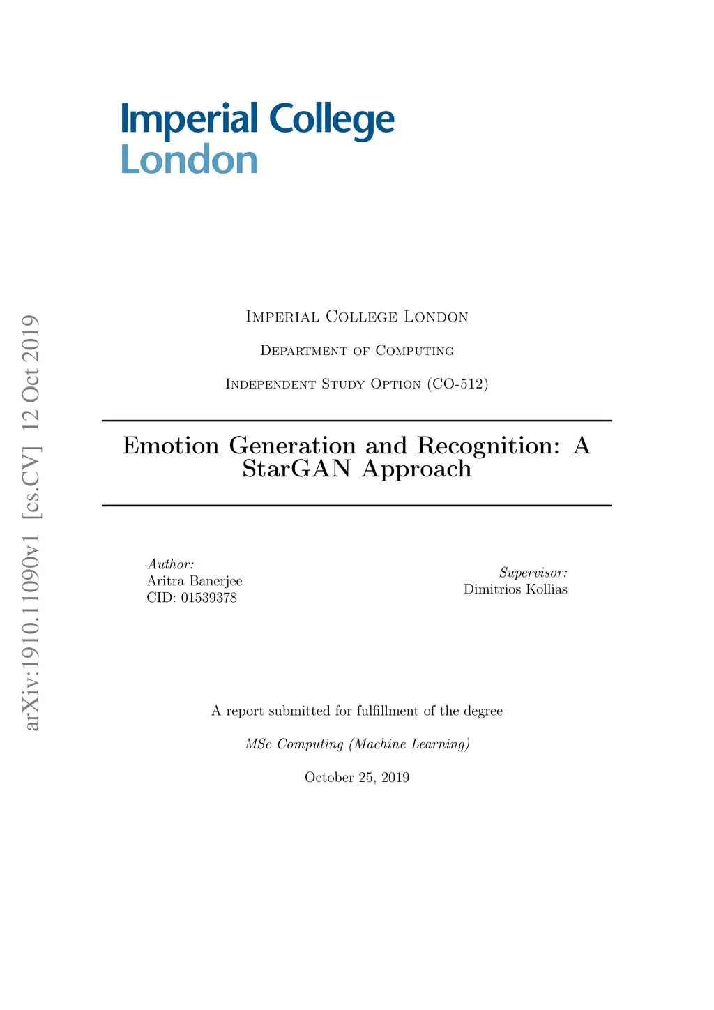 The main idea of this ISO is to use StarGAN (A type of GAN model) to perform training and testing on an emotion dataset resulting in a emotion recognition which can be generated by the valence arousal score of the 7 basic expressions. We have created an entirely new dataset consisting of 4K videos. This dataset consists of all the basic 7 types of emotions: Happy, Sad, Angry, Surprised, Fear, Disgust, Neutral. We have performed face detection and alignment followed by annotating basic valence arousal values to the frames/images in the dataset depending on the emotions manually. Then the existing StarGAN model is trained on our created dataset after which some manual subjects were chosen to test the efficiency of the trained StarGAN model.
