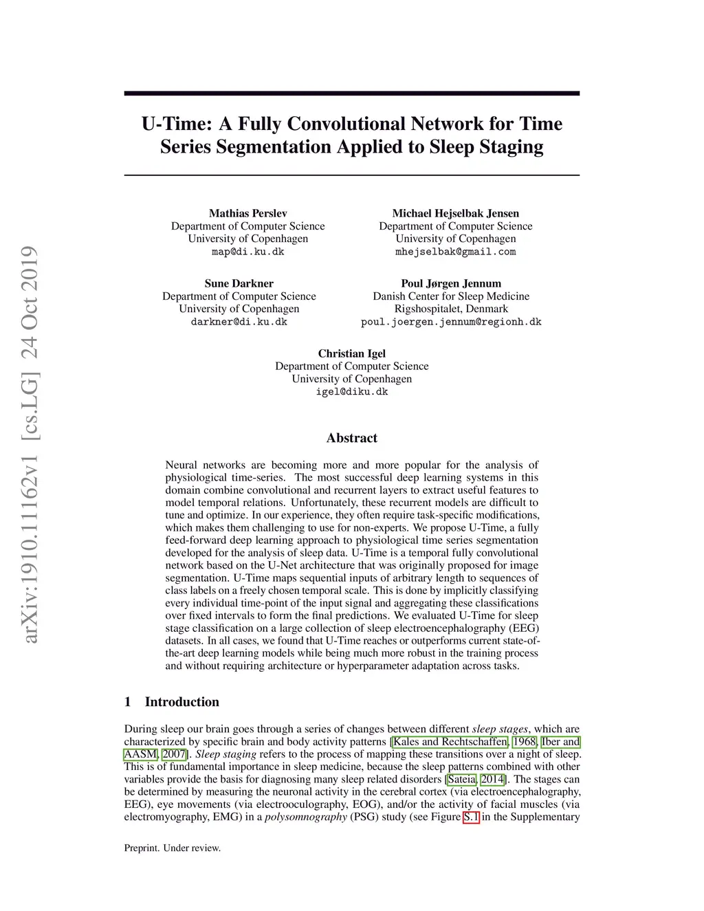 U-Time: A Fully Convolutional Network for Time Series Segmentation