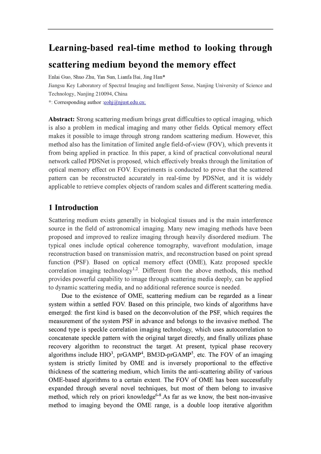 Strong scattering medium brings great difficulties to optical imaging, which is also a problem in medical imaging and many other fields. Optical memory effect makes it possible to image through strong random scattering medium. However, this method also has the limitation of limited angle field-of-view (FOV), which prevents it from being applied in practice. In this paper, a kind of practical convolutional neural network called PDSNet is proposed, which effectively breaks through the limitation of optical memory effect on FOV. Experiments is conducted to prove that the scattered pattern can be reconstructed accurately in real-time by PDSNet, and it is widely applicable to retrieve complex objects of random scales and different scattering media.