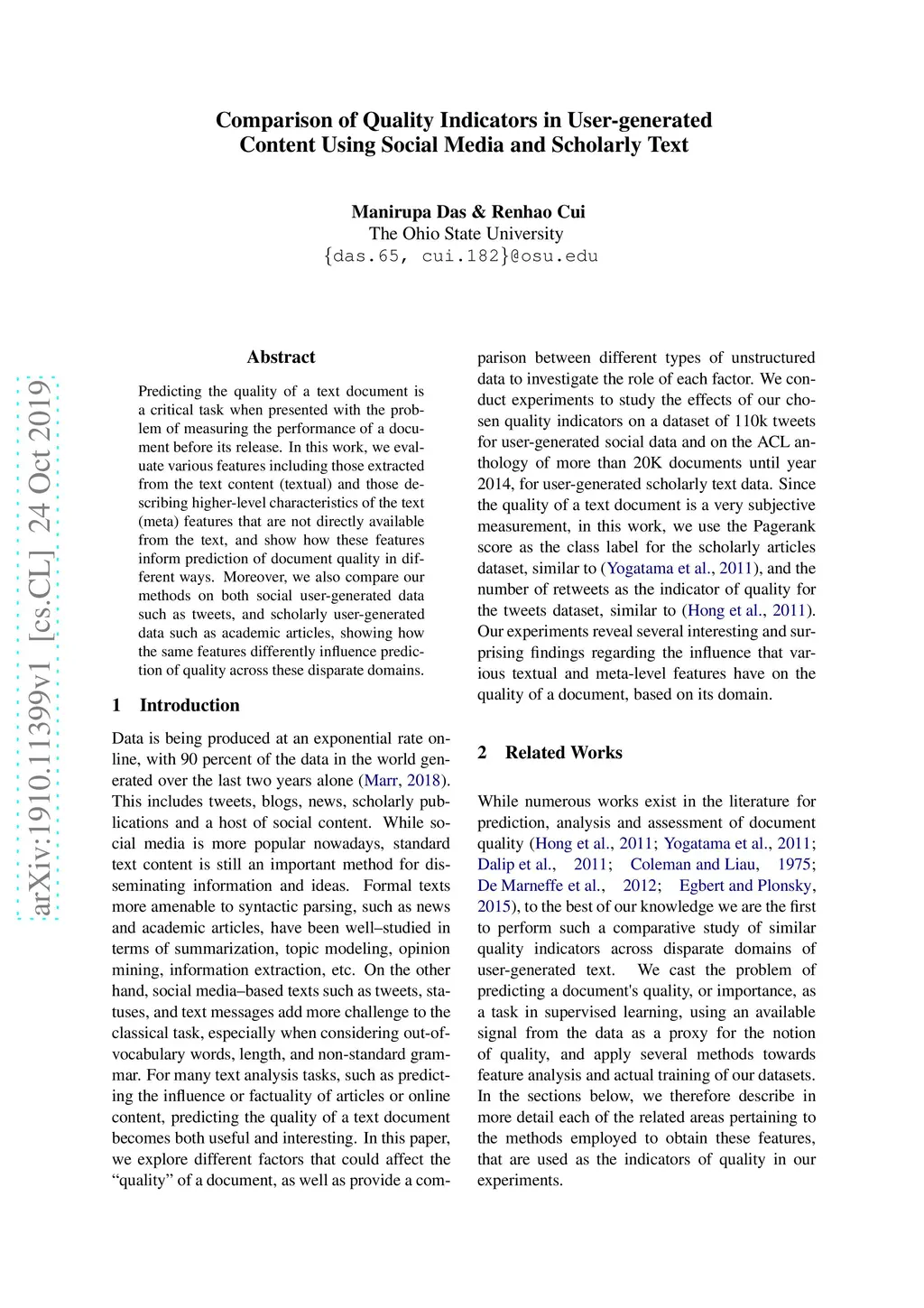 Comparison of Quality Indicators in User-generated Content Using Social