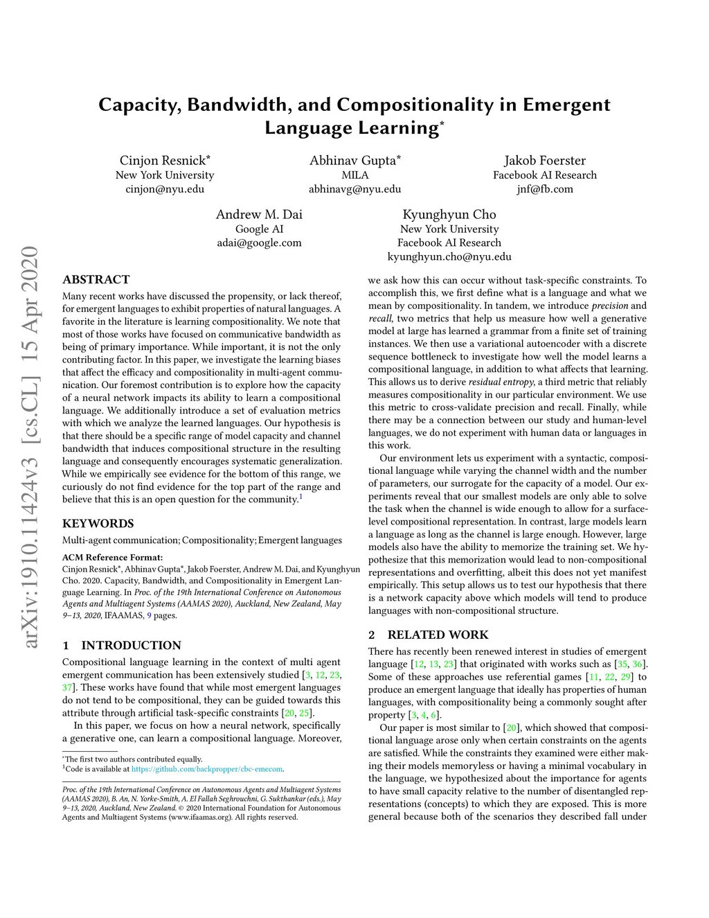 Capacity, Bandwidth, and Compositionality in Emergent Language Learning