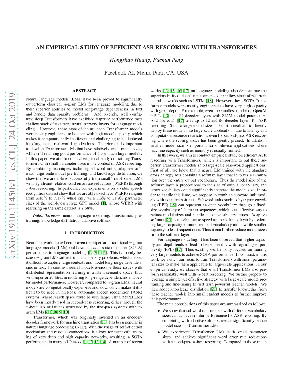 Neural language models (LMs) have been proved to significantly outperform classical n-gram LMs for language modeling due to their superior abilities to model long-range dependencies in text and handle data sparsity problems. And recently, well configured deep Transformers have exhibited superior performance over shallow stack of recurrent neural network layers for language modeling. However, these state-of-the-art deep Transformer models were mostly engineered to be deep with high model capacity, which makes it computationally inefficient and challenging to be deployed into large-scale real-world applications. Therefore, it is important to develop Transformer LMs that have relatively small model sizes, while still retaining good performance of those much larger models. In this paper, we aim to conduct empirical study on training Transformers with small parameter sizes in the context of ASR rescoring. By combining techniques including subword units, adaptive softmax, large-scale model pre-training, and knowledge distillation, we show that we are able to successfully train small Transformer LMs with significant relative word error rate reductions (WERR) through n-best rescoring. In particular, our experiments on a video speech recognition dataset show that we are able to achieve WERRs ranging from 6.46% to 7.17% while only with 5.5% to 11.9% parameter sizes of the well-known large GPT model [1], whose WERR with rescoring on the same dataset is 7.58%.