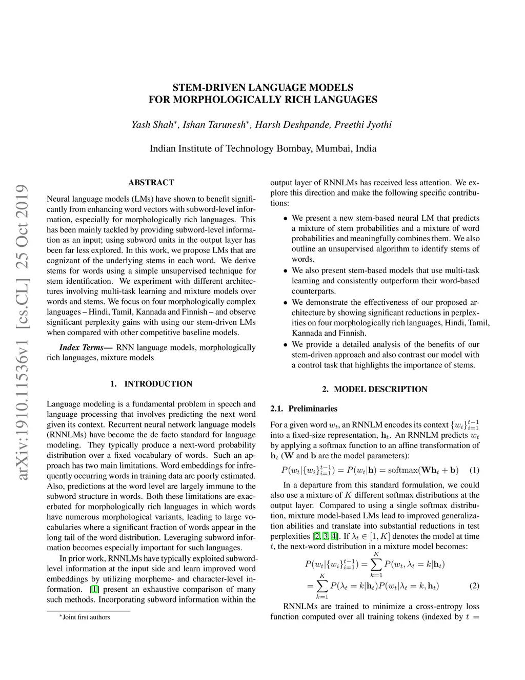 Neural language models (LMs) have shown to benefit significantly from enhancing word vectors with subword-level information, especially for morphologically rich languages. This has been mainly tackled by providing subword-level information as an input; using subword units in the output layer has been far less explored. In this work, we propose LMs that are cognizant of the underlying stems in each word. We derive stems for words using a simple unsupervised technique for stem identification. We experiment with different architectures involving multi-task learning and mixture models over words and stems. We focus on four morphologically complex languages -- Hindi, Tamil, Kannada and Finnish -- and observe significant perplexity gains with using our stem-driven LMs when compared with other competitive baseline models.