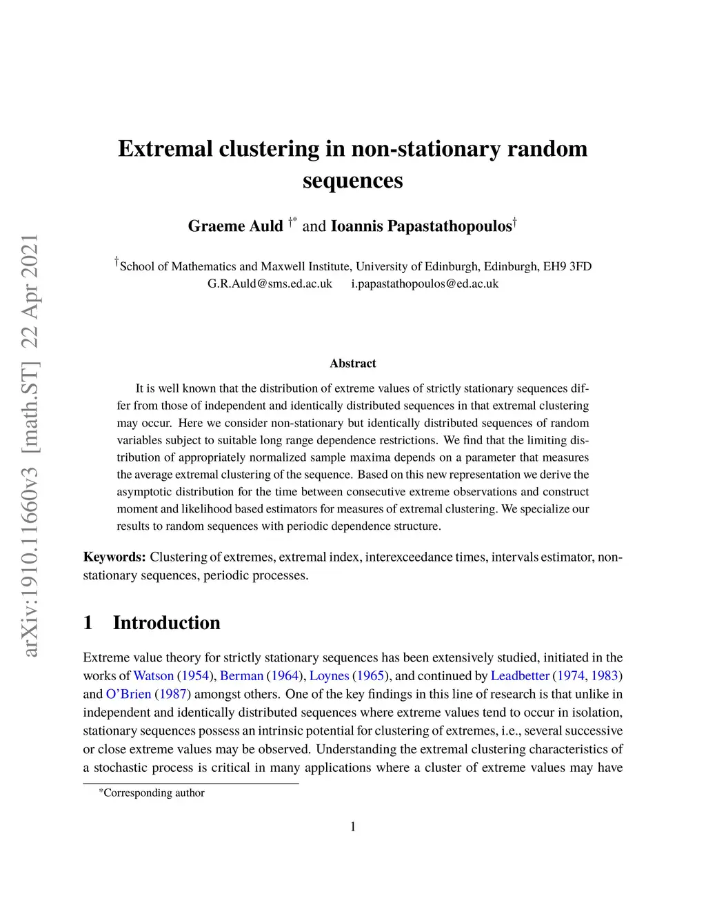 It is well known that the distribution of extreme values of strictly stationary sequences differ from those of independent and identically distributed sequences in that extremal clustering may occur. Here we consider non-stationary but identically distributed sequences of random variables subject to suitable long-range dependence restrictions. We find that the limiting distribution of appropriately normalized sample maxima depends on a parameter that measures the average extremal clustering of the sequence. Based on this new representation we derive the asymptotic distribution for the time between consecutive extreme observations and construct moment and likelihood-based estimators for measures of extremal clustering. We specialize our results to random sequences with periodic dependence structure.