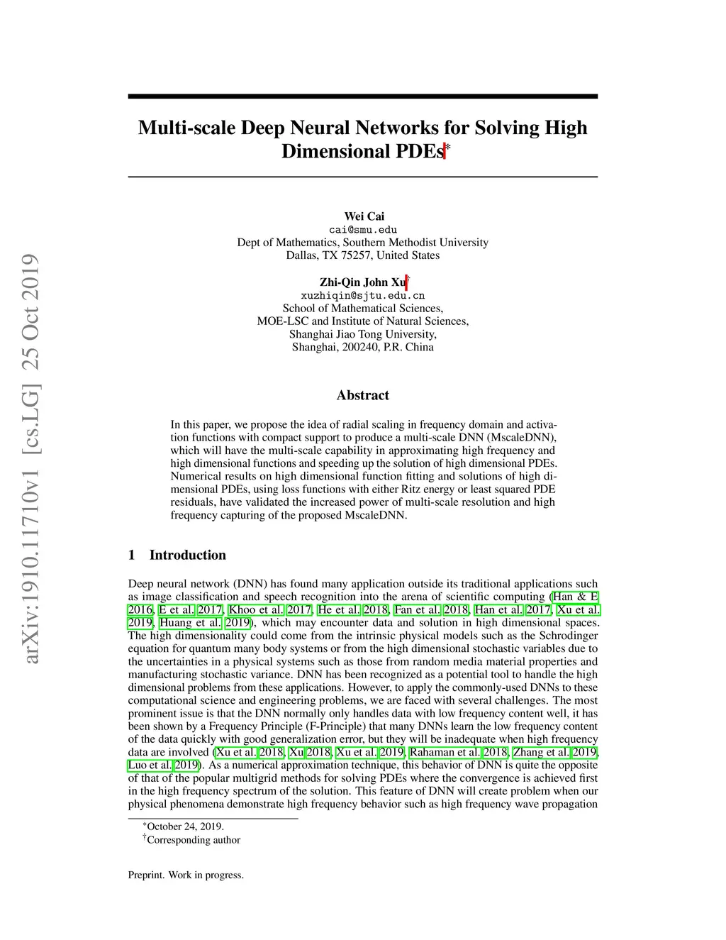 Multi-scale Deep Neural Networks for Solving High Dimensional PDEs