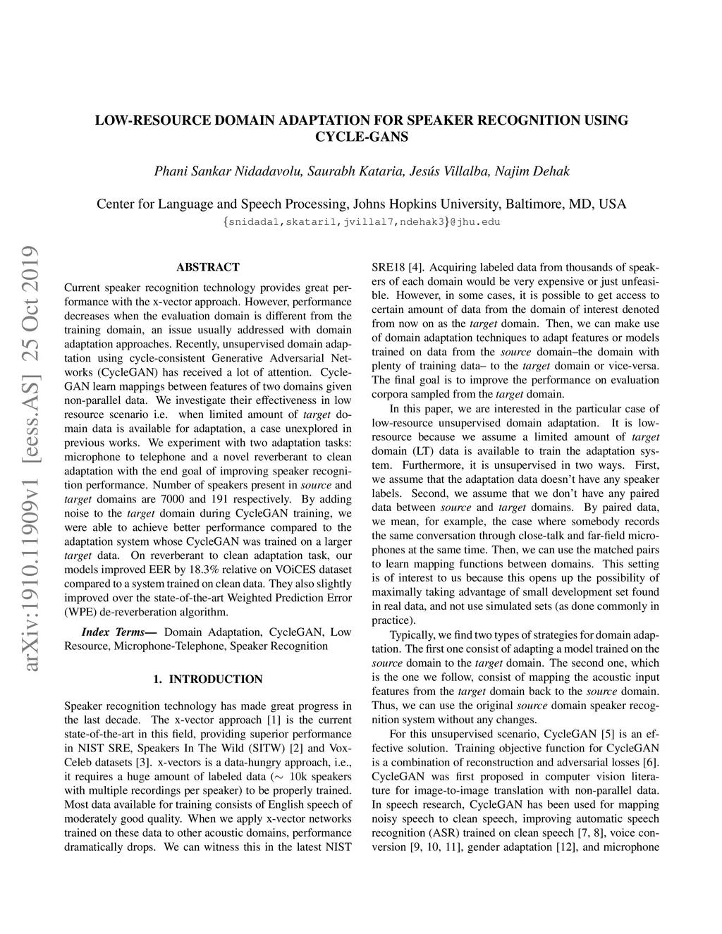 Low-Resource Domain Adaptation for Speaker Recognition Using Cycle-GANs