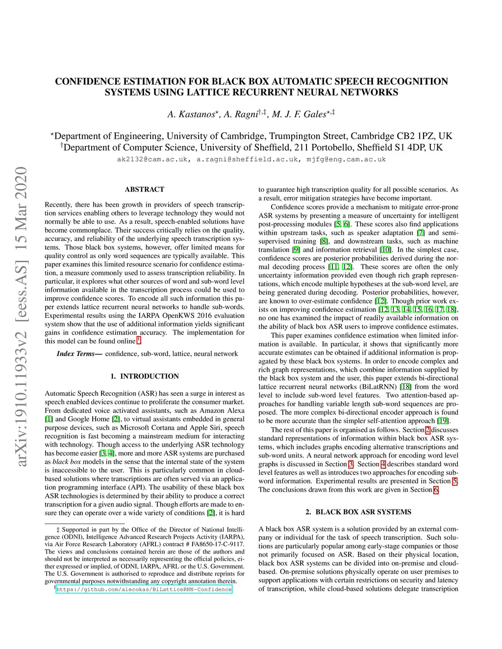 Confidence Estimation for Black Box Automatic Speech Recognition Systems