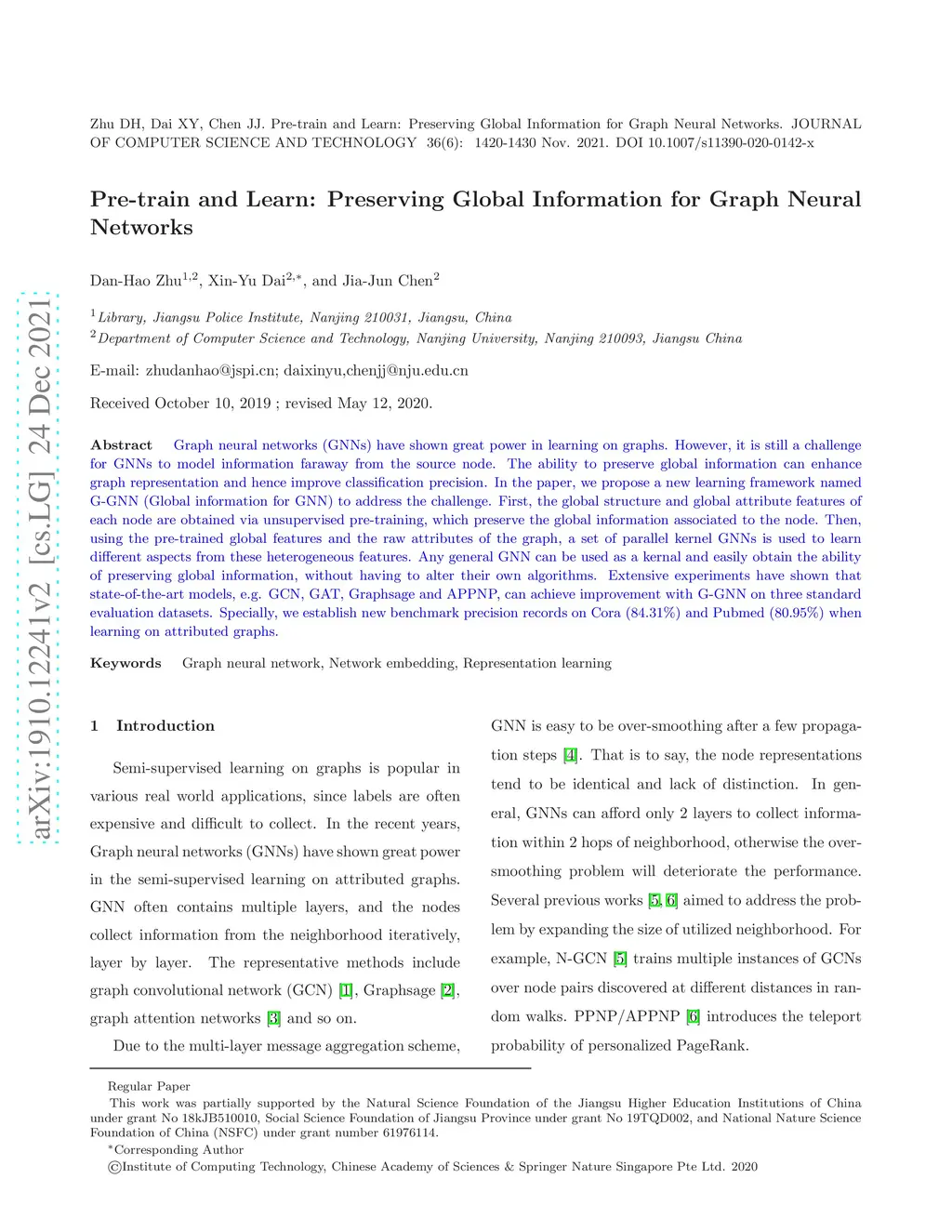 Pre-train and Learn: Preserve Global Information for Graph Neural