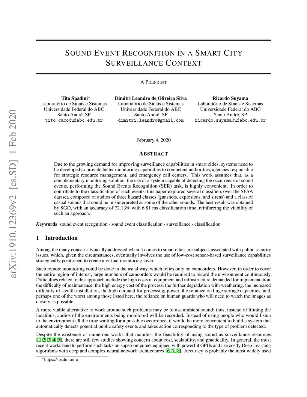 Sound Event Recognition in a Smart City Surveillance Context